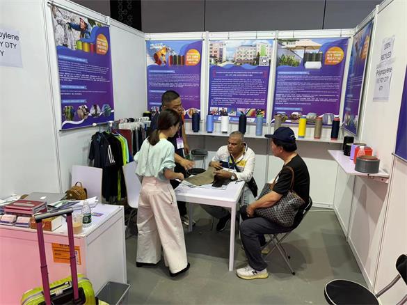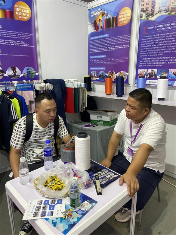 國星展臺(8.2館A117)設(shè)計簡潔、大氣,展示了我司丙綸FDY/DTY/ATY絲,細旦絲等參展產(chǎn)品,放眼望去,一目了然,在展會中向大家充分展示出優(yōu)秀品牌形象。